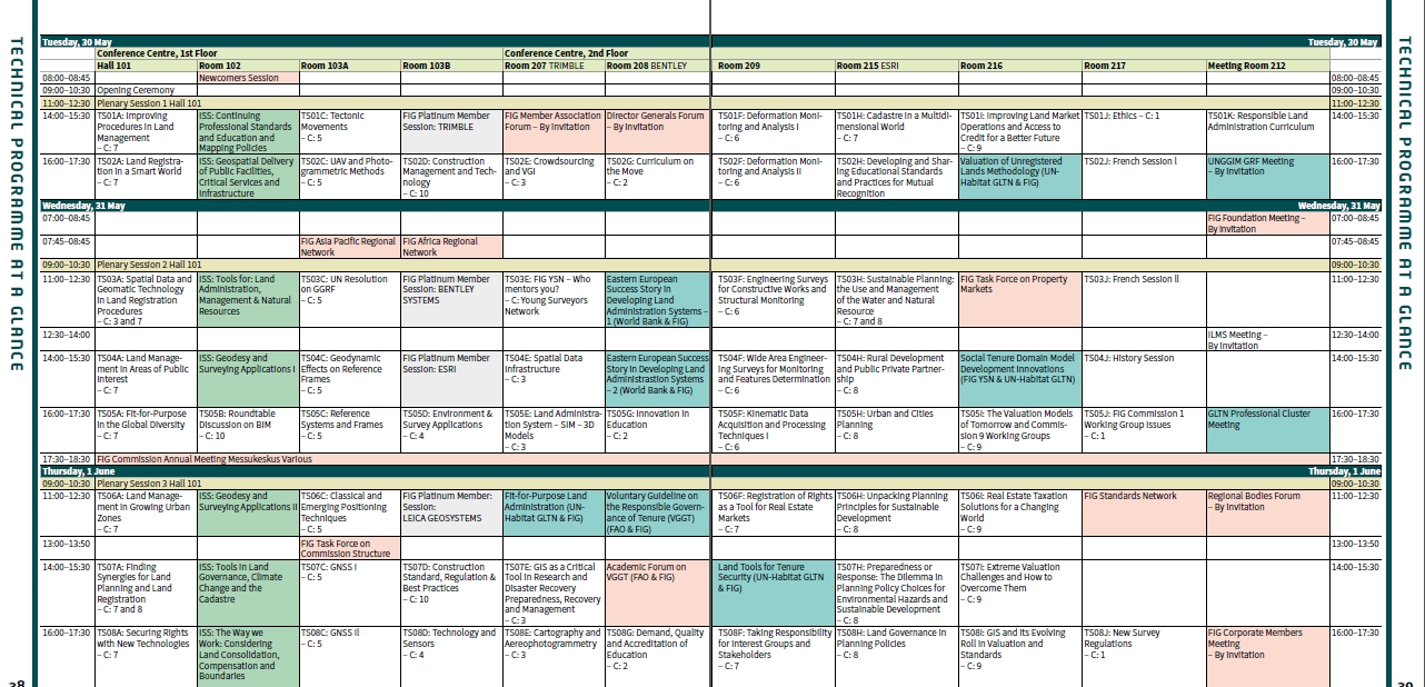 sessions Opening Ceremony Technical Programme Forum sessions Technical tours FIG Commission Meetings |