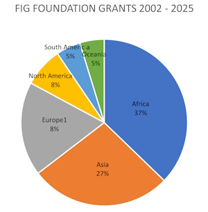 During the period 2002-2025 the FIG Foundation has donated a total 284 grants to surveyors from 85 countries. The Foundation also aims to sponsor 3-5 Young Surveyors to the yearly FIG Working Week/ Congress, all from different continents. In total 340,000 EUR has been spent on grants in this period and distributed around the world.