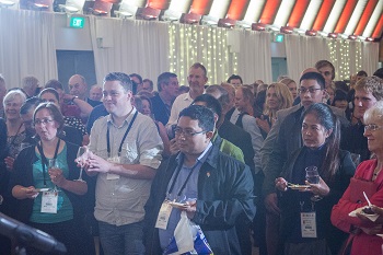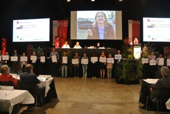 Participants listening to the FIG fanfare at the
