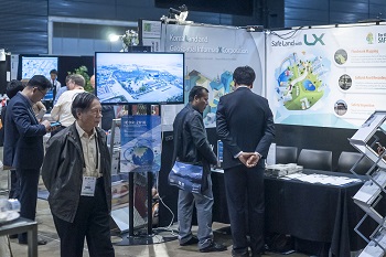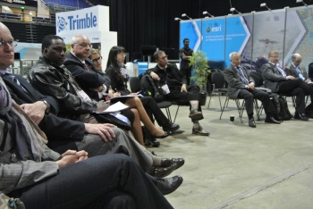 sponsors Esri and Trimble were occupying the centre of the large