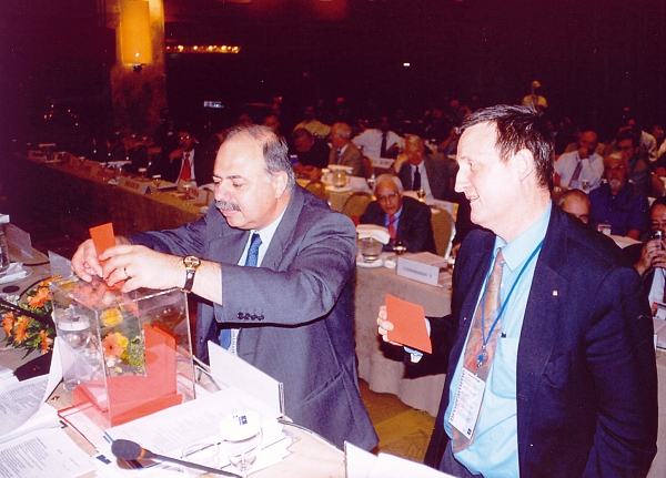 Three rounds were needed in the Vice President elections before the result was clear. Here the French delegates are giving their votes Rafic Khouri, OGE and Michel Kasser, AFT.