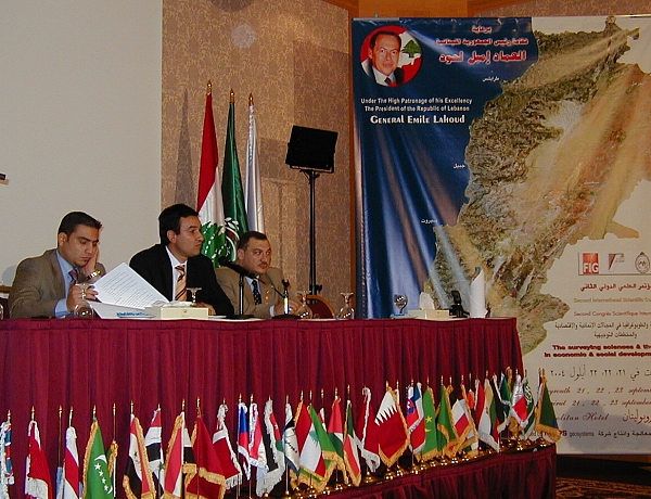 The Ordré des Topographes du Liban organised the 2nd International Scientific Congress on surveying and topography at he Metropolitan Hotel in Beirut 21-23 September 2004. The first conference was organised in September 2001. FIG was co-sponsoring this important event in the Arab world as in 2001. This time the second main organisational co-sponsor was the Arab Union of Surveyors (AUS) which also held its Board meeting in Beirut.