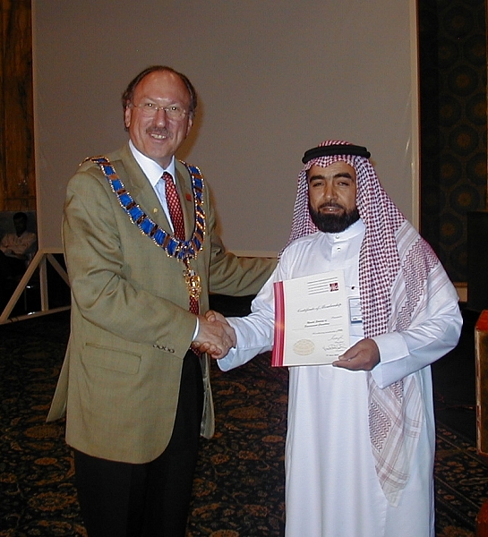 President Magel congratulating Jim Curnow from ISA, Australia.