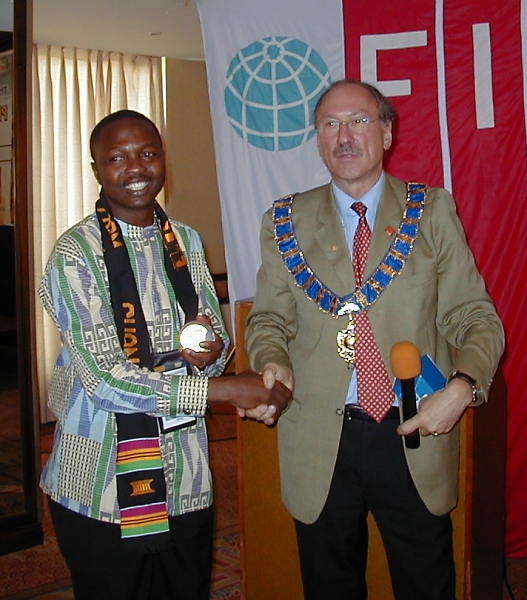FIG Vice President Andreas Drees and a Ghanaian student: |