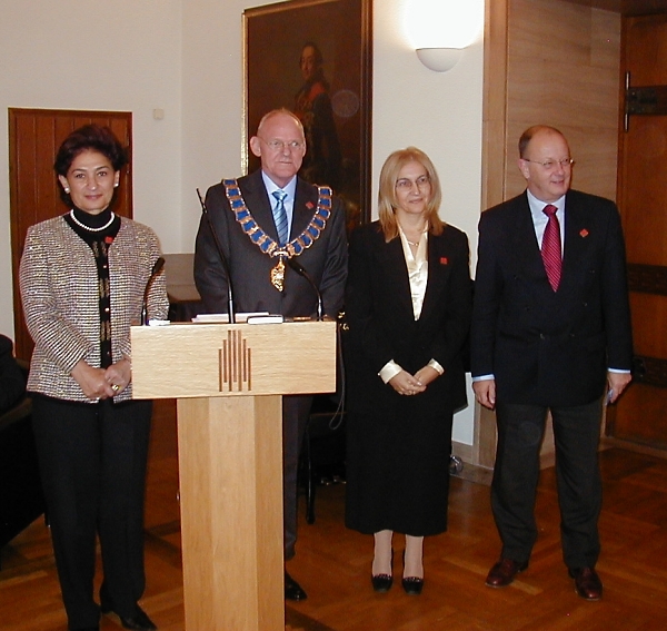 The mayor of Münster, Ms. Beate Vilhjamsson, welcomed more than 40 invited representatives from FIG, German Association for Geodesy, Geo-Information and Land Management (DVW), the host of FIG Council for the last four years, and German agencies in the “Friedensaal” (Hall of Piece) – a famous place because of the treaty of 1648 that ended the 30-years lasting war, giving peace and bringing decisive territorial changes in Europe. Mr. Hagen Graeff, DVW President reminded in his welcome address that the German Council has brought new spirit into FIG over the last four years and that the German FIG Presidency has especially made a special contribution on political activities. Mr. Graeff handed over a cheque representing a value of € 20,000 for the FIG Foundation as result from the FIG Congress in Munich.
