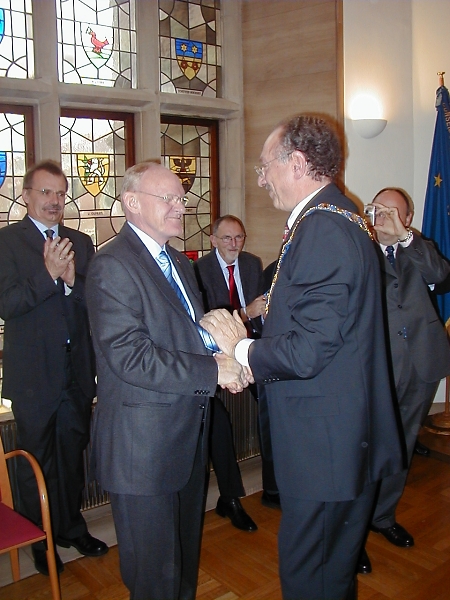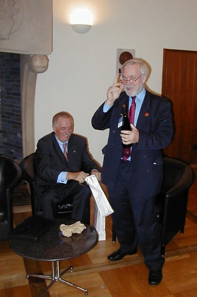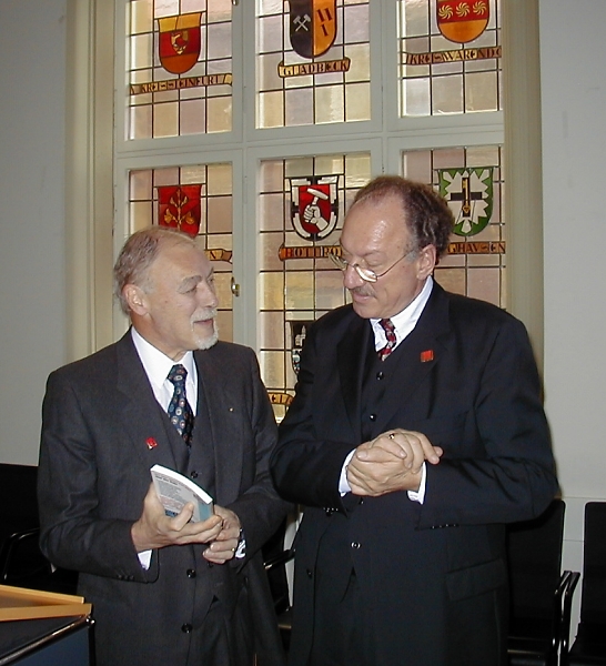 President Magel and Klaus Rürup, past chair of Commission 1 at the reception after the ceremony. President Magel receives guidance for his live after the presidency.