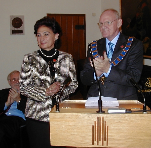Then the handover of the chain of office from Holger Magel to Stig Enemark took place with the assistance by Hagen Graeff. The new members of the Council were introduced: Dr. Dalal S. Alnaggar, who also received her FIG badge of office, Prof. Paul van der Molen and Dr. Chryssy Potsiou as the ACCO representative. The two remaining members of the new Council Ken Allred and Matt Higgins were not able to attend the ceremony because of problems with their travels.