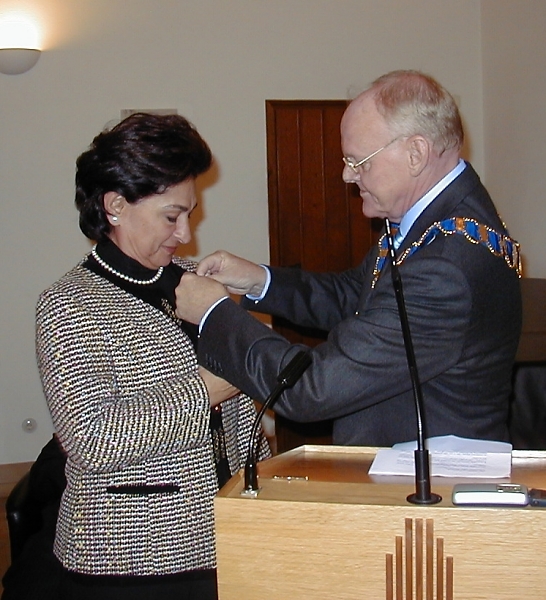 After the new President received his chain of office, it was time to introduce the new Council members. Dalal S. Alnaggar gets her badge of office from Stig Enemark.