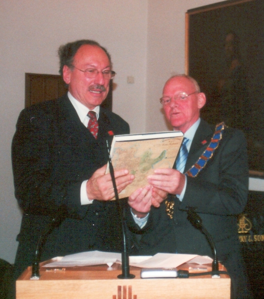 President Magel, expert on development of rural areas receives a book on urban planning and city development.