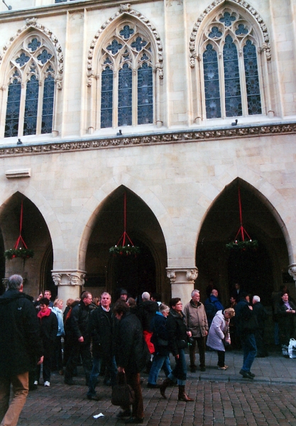 Invited guests at the Friedensaal (Hall of Peace) where the negotiations on the peace after the 30-year long war took place in 1640s.
