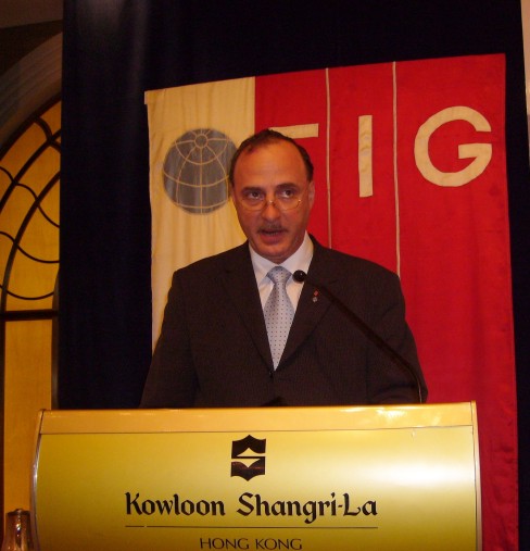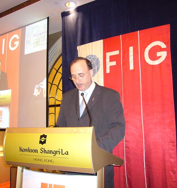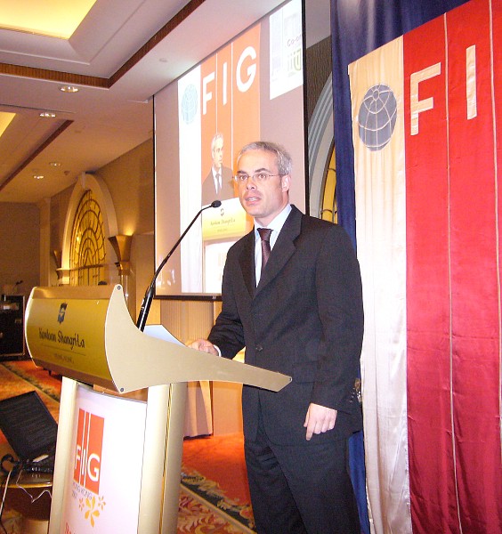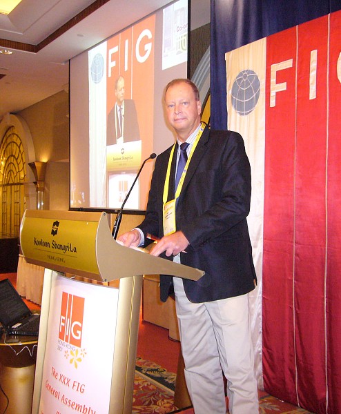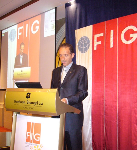 Director Antonio Benvenuti, CNG from Italy, making the bid for hosting FIG Working Week 2012 in Rome, Italy.