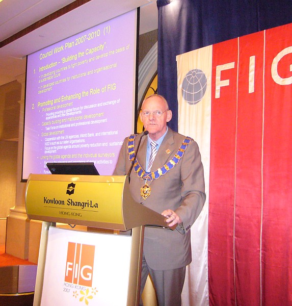 President Enemark making his presentation on the FIG Work Plan 2007-2010.