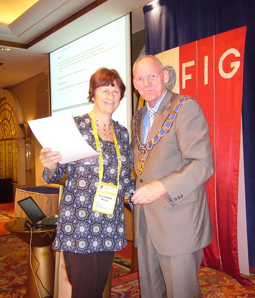 Ms. Kari Strande from Statens kartverk, Norway, new affiliate member of FIG and President Stig Enemark.