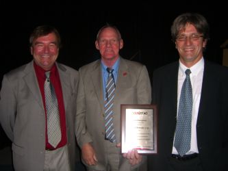 Stig Enemark with two of the Conference Organizers Pierre Tessier (President of Quebec Land Surveyors) and