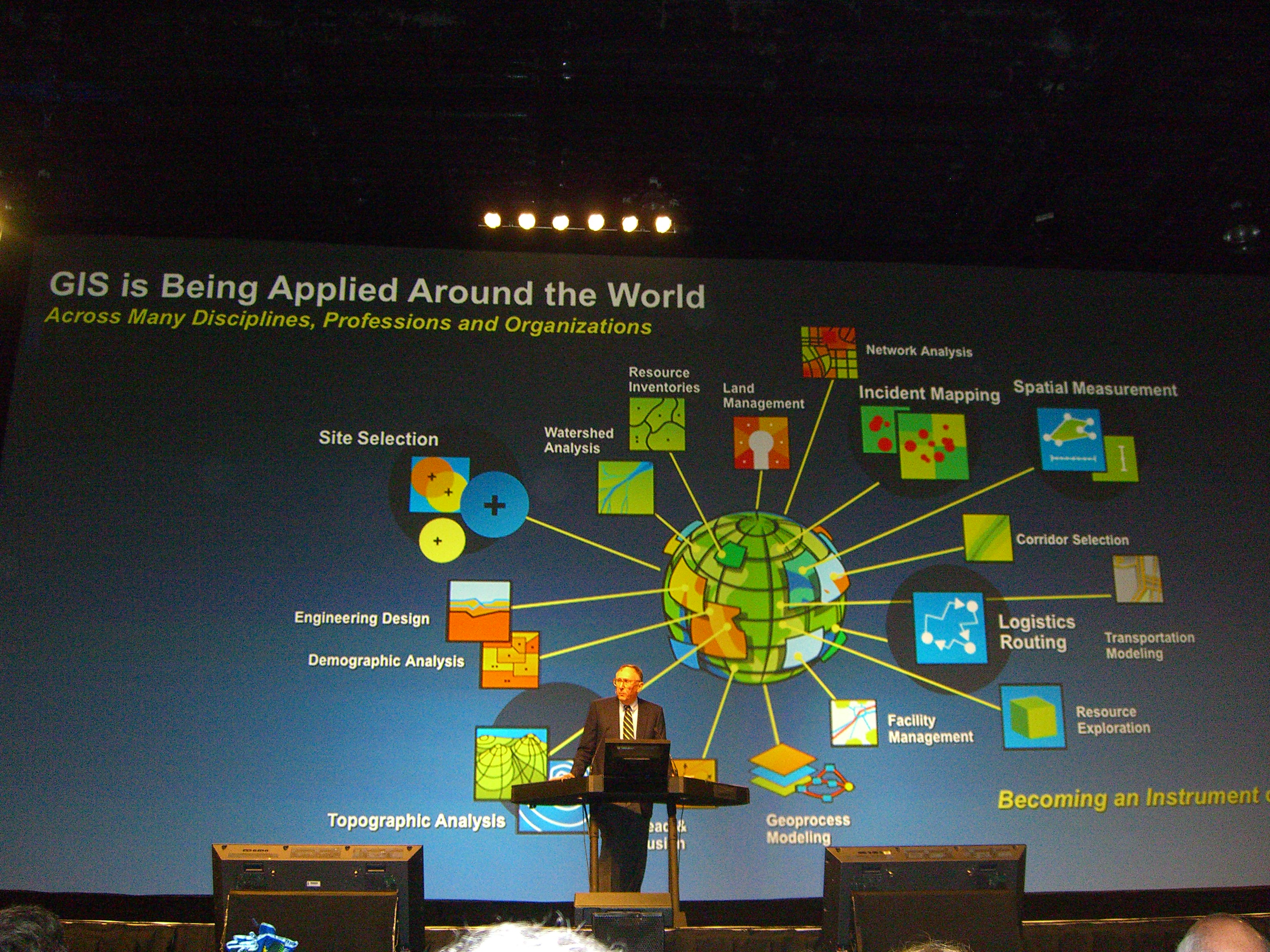 a keynote presentation from Jack Dangermond, president of ESRI, showing how GIS