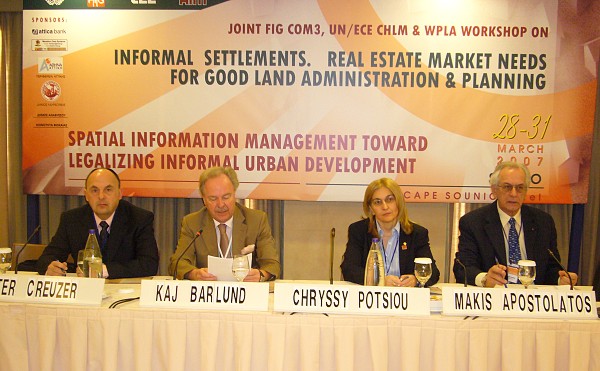 Makis Apostolatos, FIG Commission 3 Vice Chair of Administration, Doris Andoni, UN/ECE CHLM Chair, and
