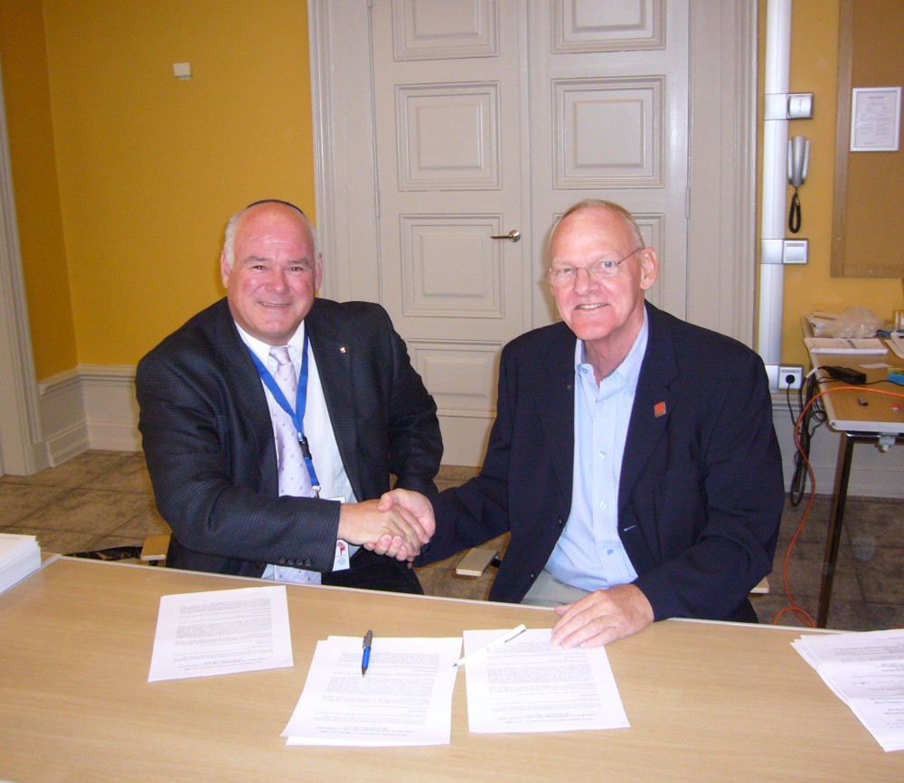 President Stig Enemark and Moshe Fogel signed the agreement between FIG and ALSI on the arrangements of the FIG Working Week in Eilat, Israel in May 2009.