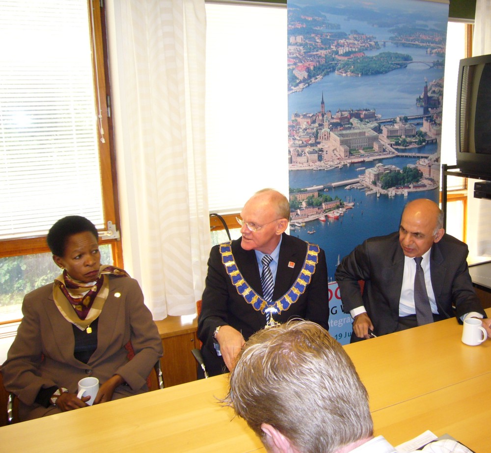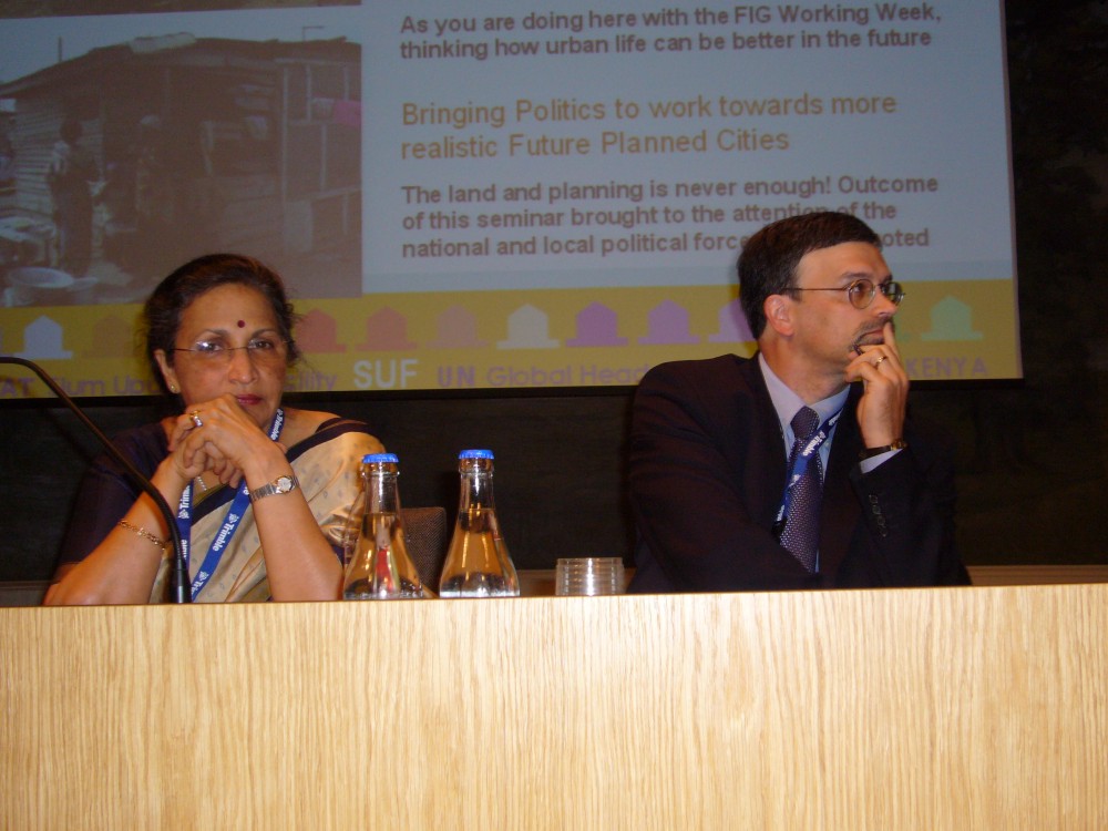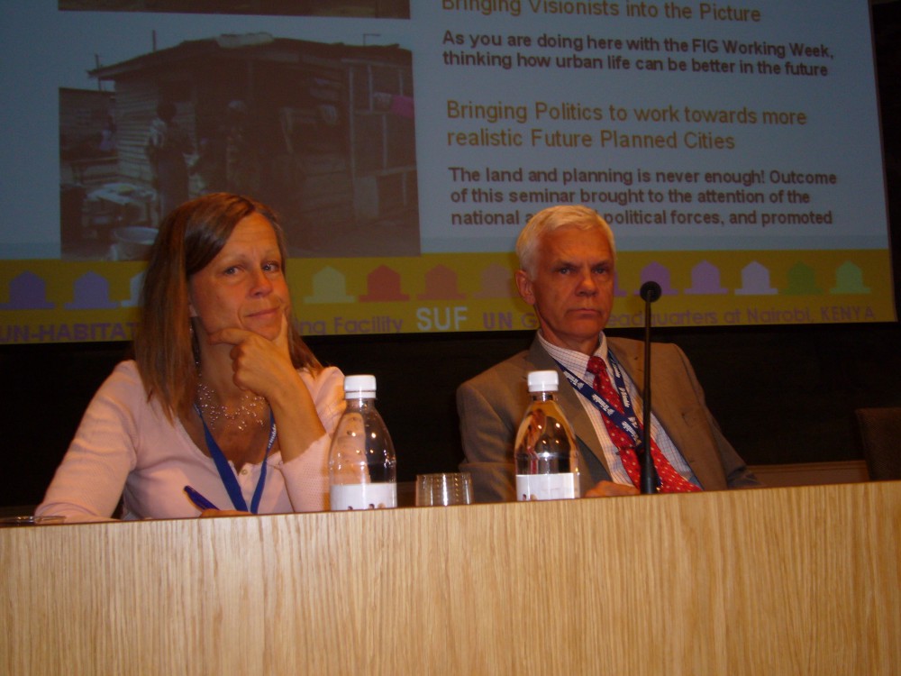 Anna Tibaijuka and Szilard Fricska from UN-HABITAT in briefing with Stig Enemark and Cecilia Lindén.