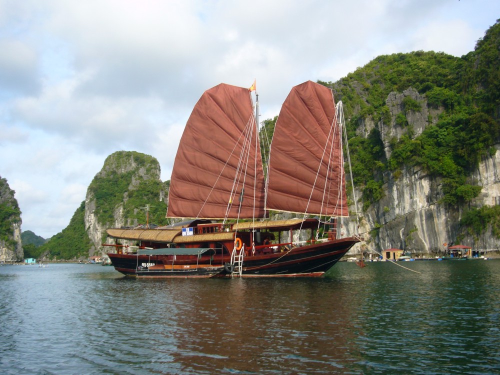 Long Bay (Vietnamese: Vịnh Hạ Long) which is a UNESCO World Heritage site