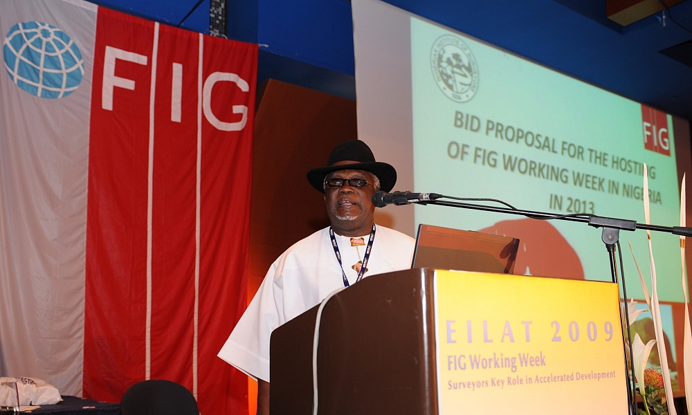 Alabo C. D. Charles, Vice President of the Nigerian Institute of Surveyors making the NIS bid to host FIG 2013 in Nigeria.