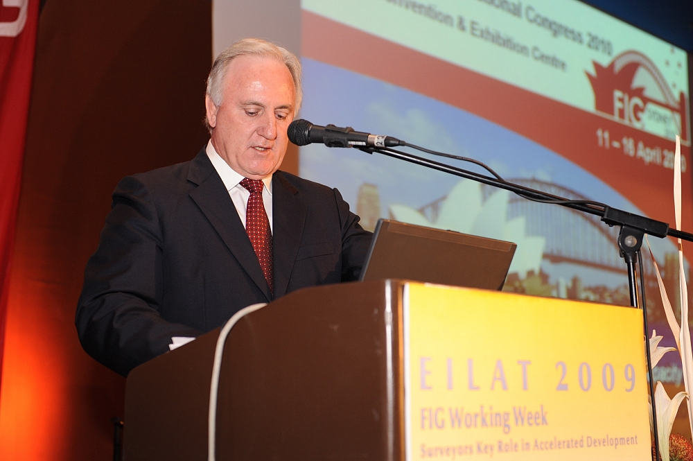 Warwick Watkins, Surveyor General of New South Wales, Australia making the presentation on FIG 2010 in Sydney.