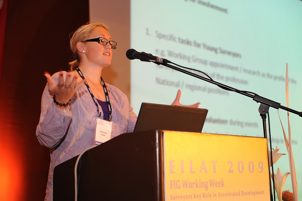Cecilia Lindén, Chair of Young Surveyors Network encouraging members to become active in the network.