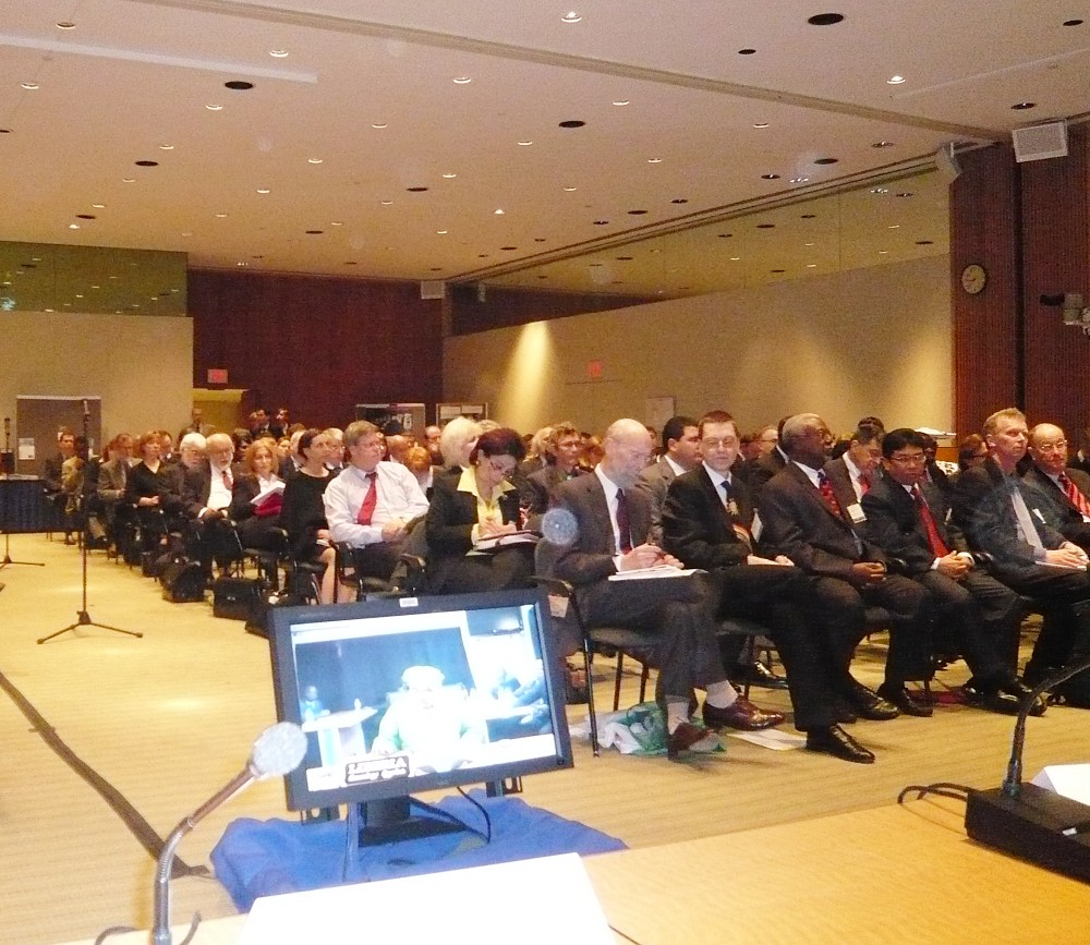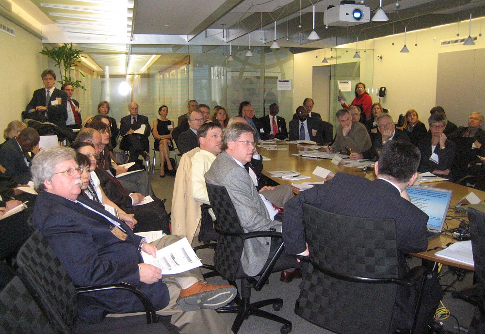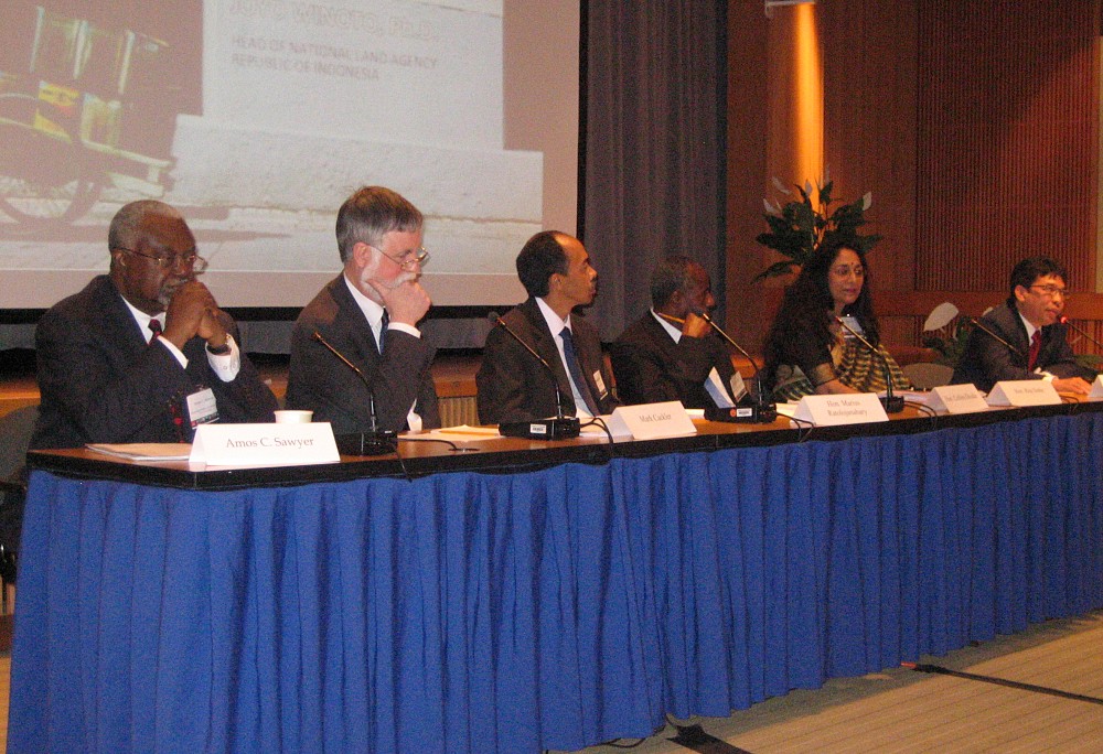 Session with country reports: (from left:) A. Sawyer, Government of Liberia, M. Crackler, Act. Director World Bank, Rural Division, M. Ratolojanahary, Minister of Lands, Madagascar, C. Dauda, Minister of Lands, Ghana, R. Sinha, Secretary of State Land Resources, India; and J. Winoto, Director General BPN Indonesia.