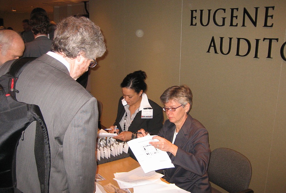 Registration desk with Pauline van Elsland and Anu Saxen.