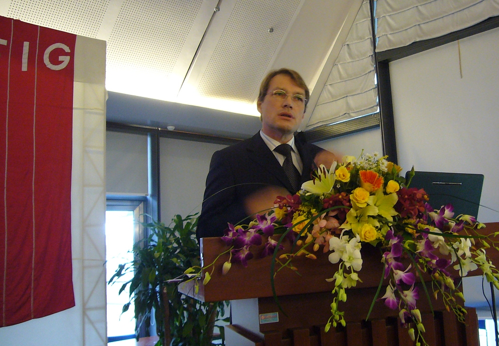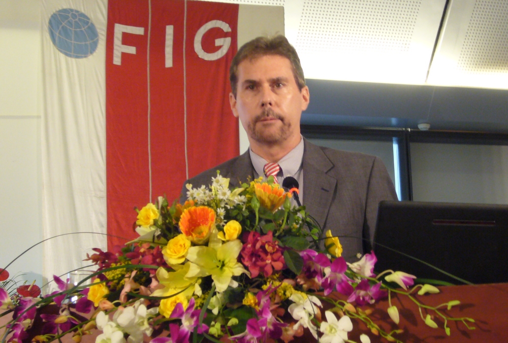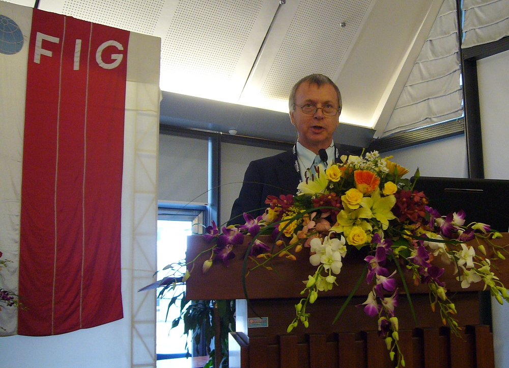 FIG Honorary President Holger Magel from Germany addressing issues on capacity development in the third plenary session.