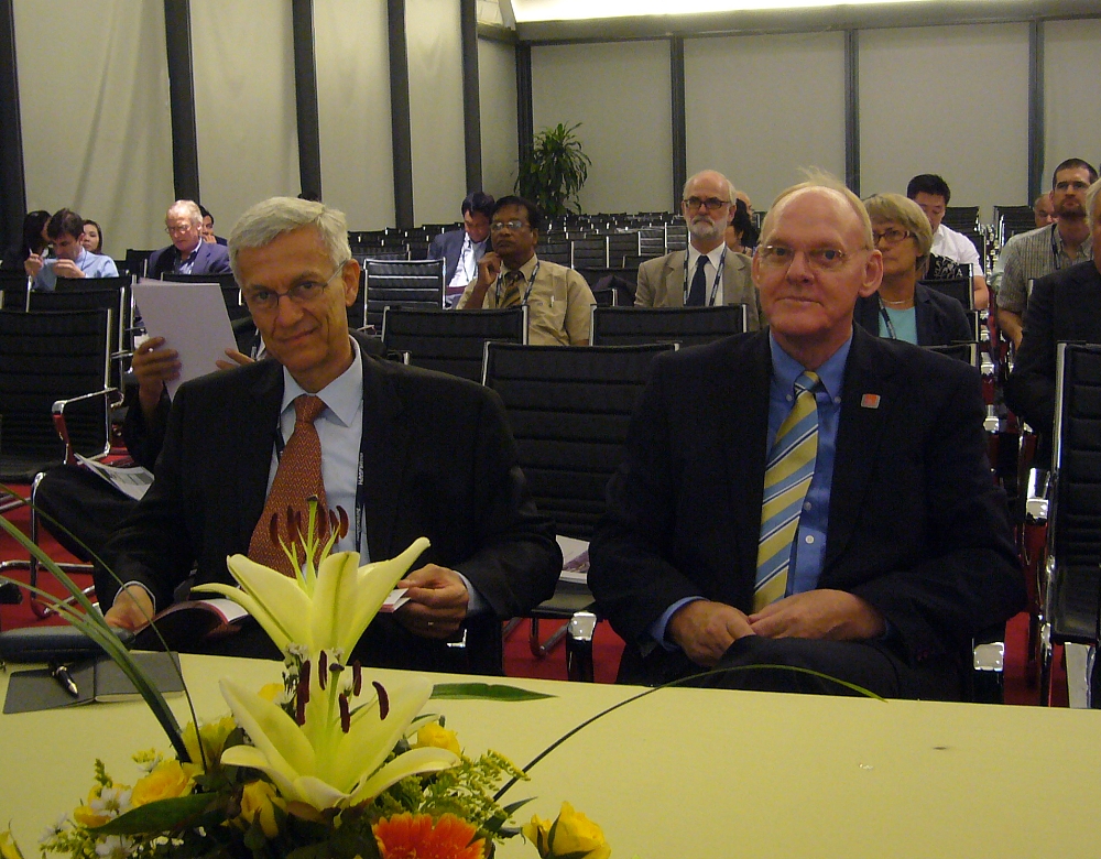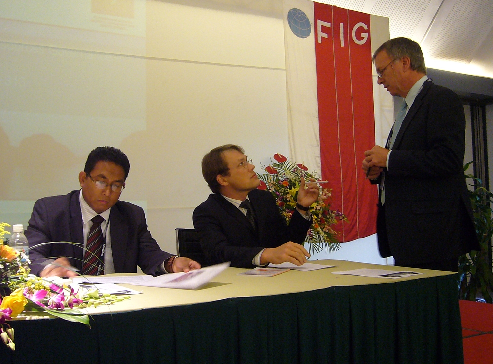 Mohammed El Shioufi, UN-HABITAT and Stig Enemark listening presentations at the joint FAO/FIG technical session.
