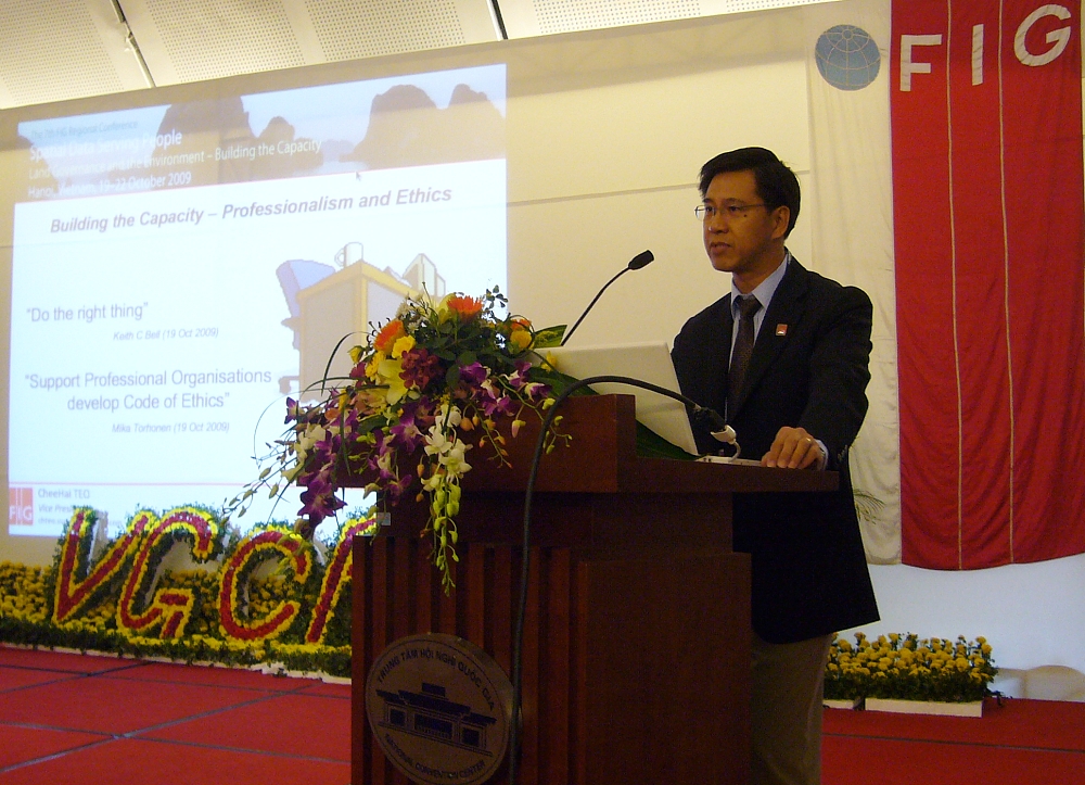 FIG Vice President Teo CheeHai from Malaysia discussing professional ethics and standards in his keynote on the last day of the conference.