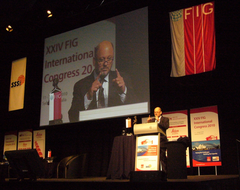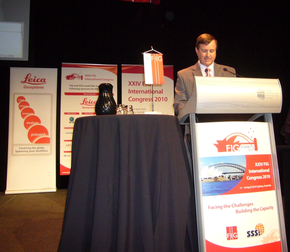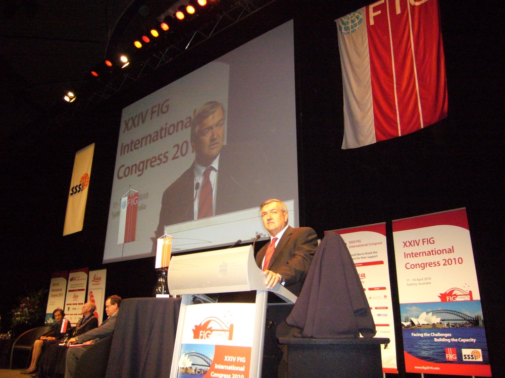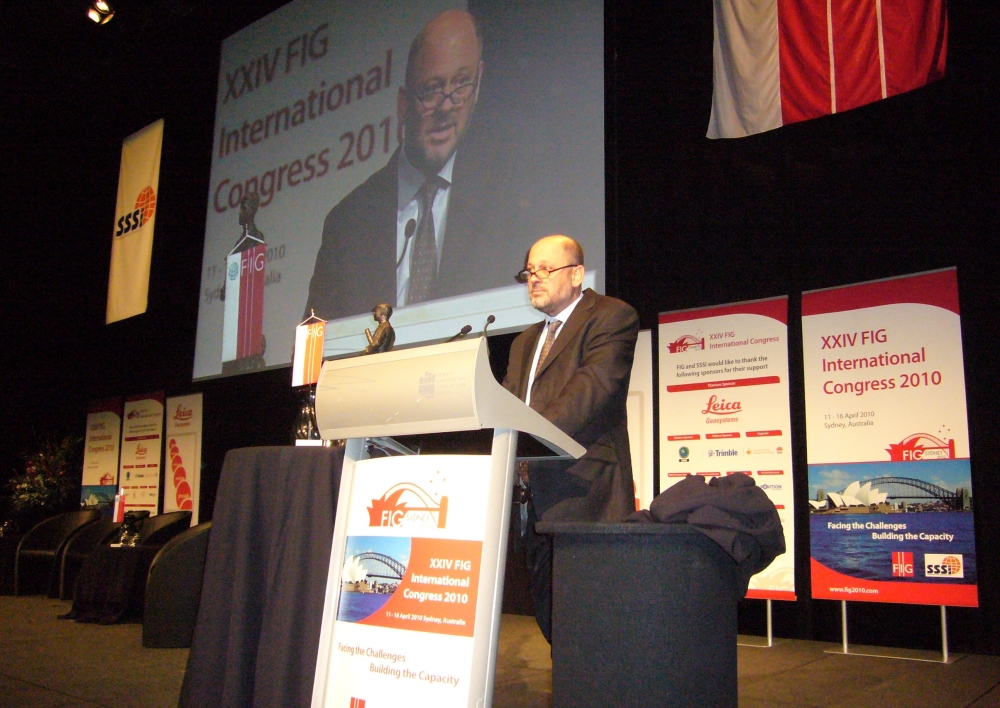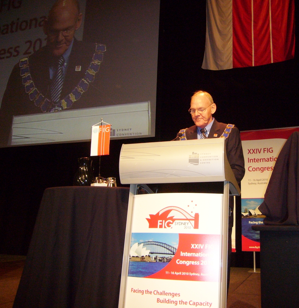 FIG President Stig Enemark making his opening address at the