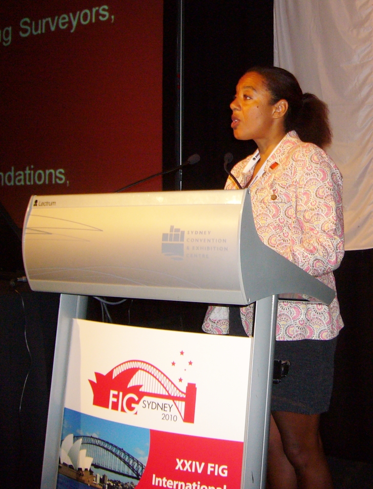 Dr. Diane Dumashie, Chair of the FIG Africa Task Force making her