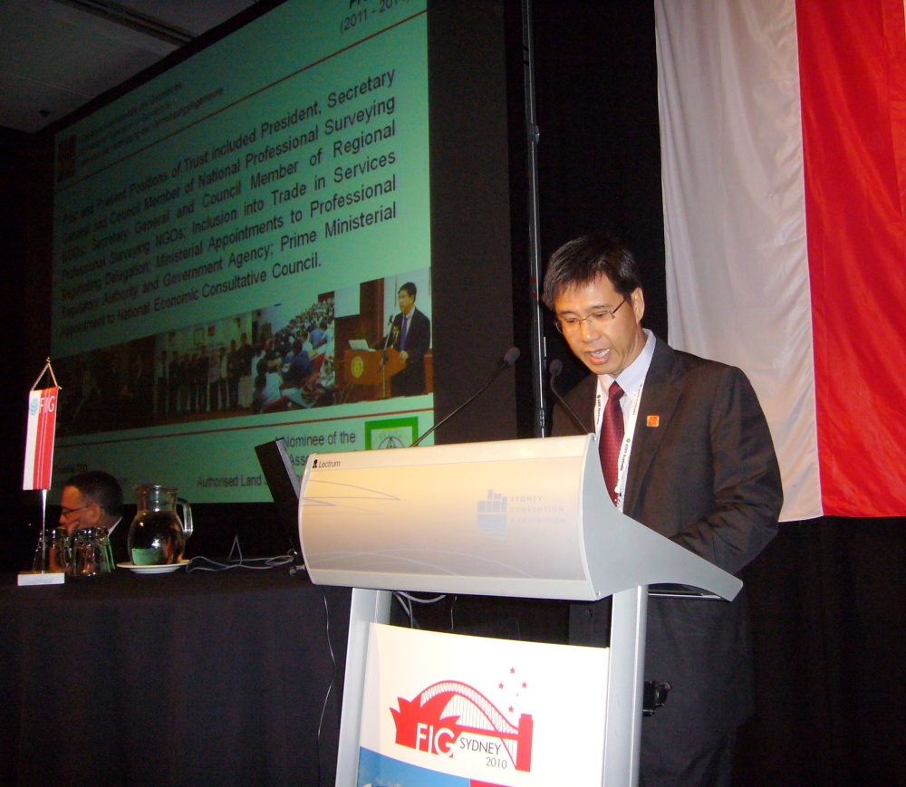 making the presentation on behalf of HKMO for hosting the FIG Congress