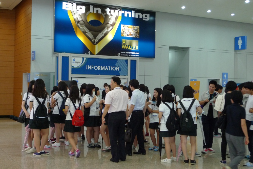 Korean Secondary School kids waiting to enter the 2010 Smart Korea