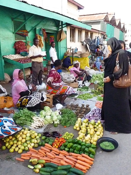 The lively vegetable market in Mombasa. |