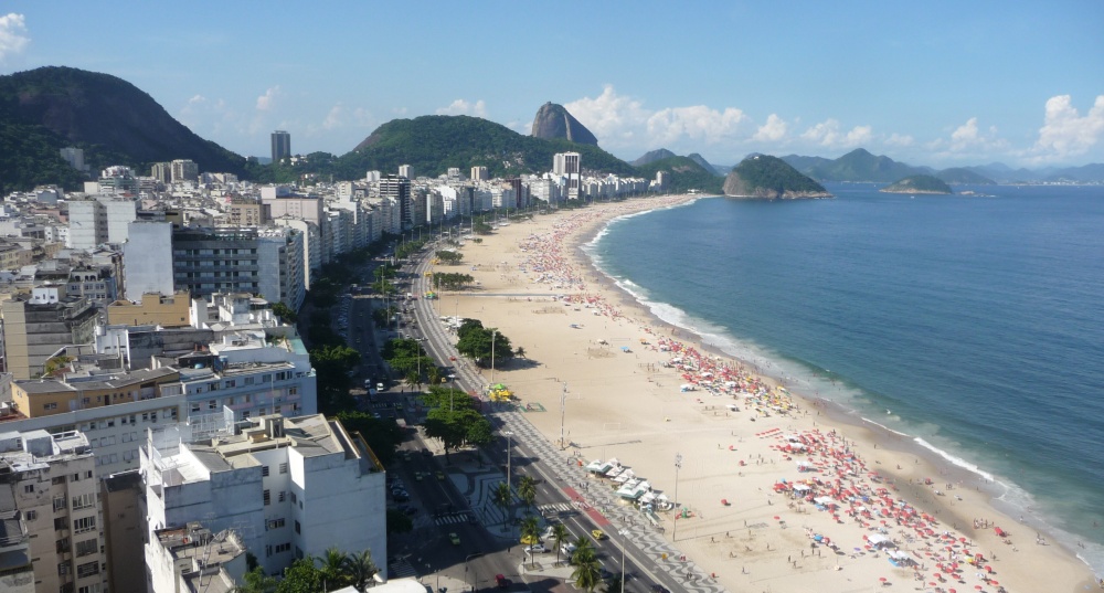 The famous Copacabana beach with the Sugar Loaf cliff in the background.