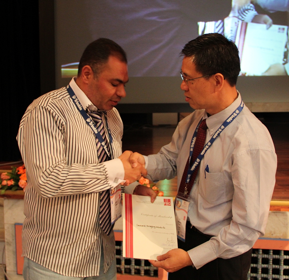 General Manager Ashraf Omar from Concord Surveying Works receiving the membership certificate as a corporate member.