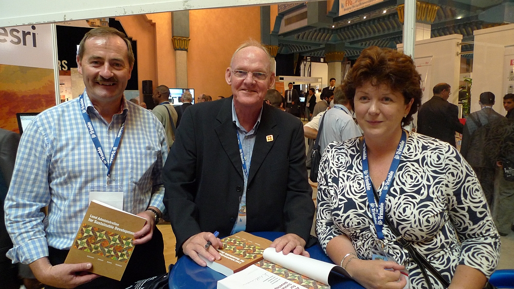 At the ESRI booth Stig Enemark signed the books on land administration that was published by ESRI in 2010.
