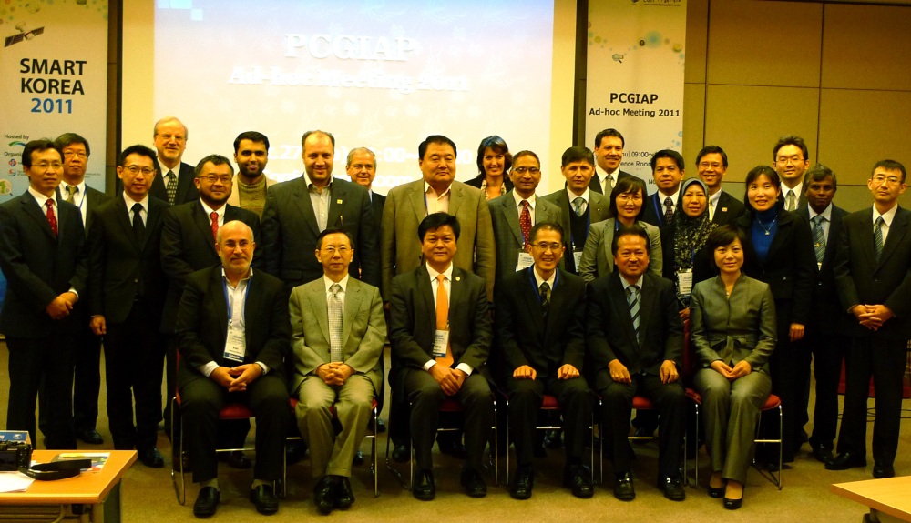 Dr. LI Pengde, President [3rd L-R], Dr. Hiroshi Murukawa, Vice President [4th L-R] and Mr LEEM Seong-an, Secretary [2nd L-R] together with National Delegates and observers at the PCGIAP Ad hoc Meeting, 27th October 2011