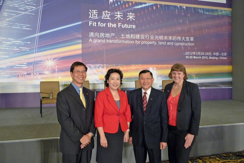 CheeHai Teo (L), Past President of the Chartered Institute of Building, Prof Li Shi-rong, SeeLian Ong, RICS Vice-President Louise Brooke-Smith (R)