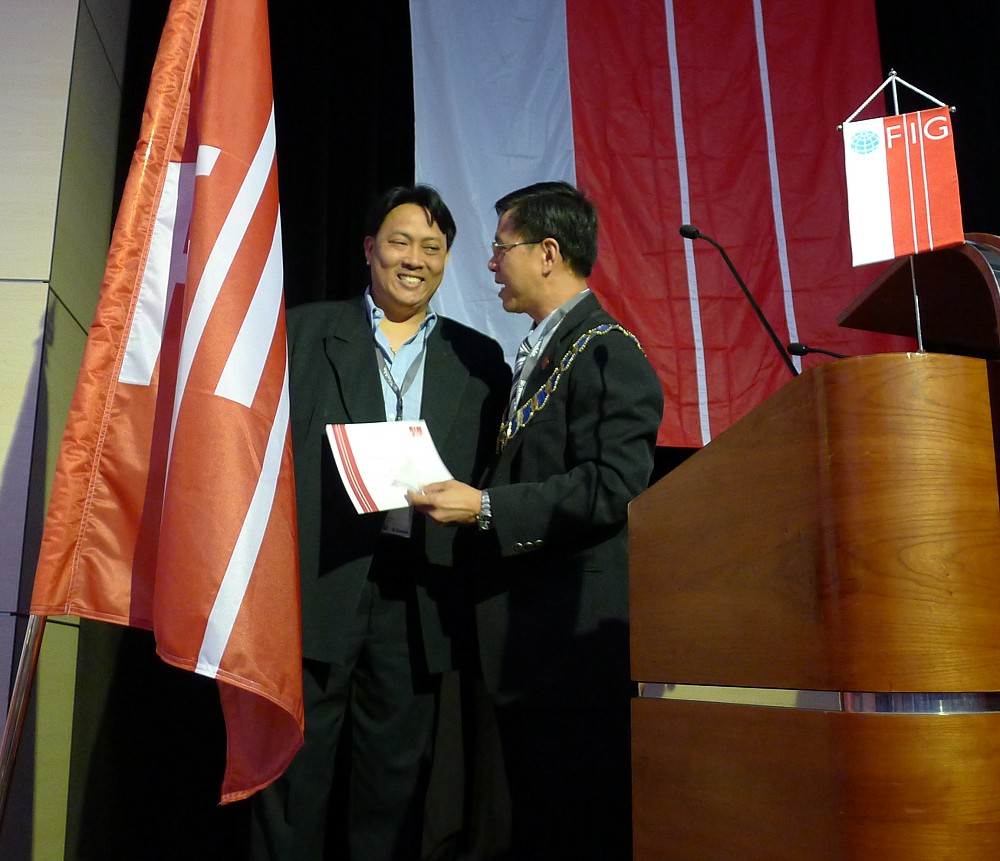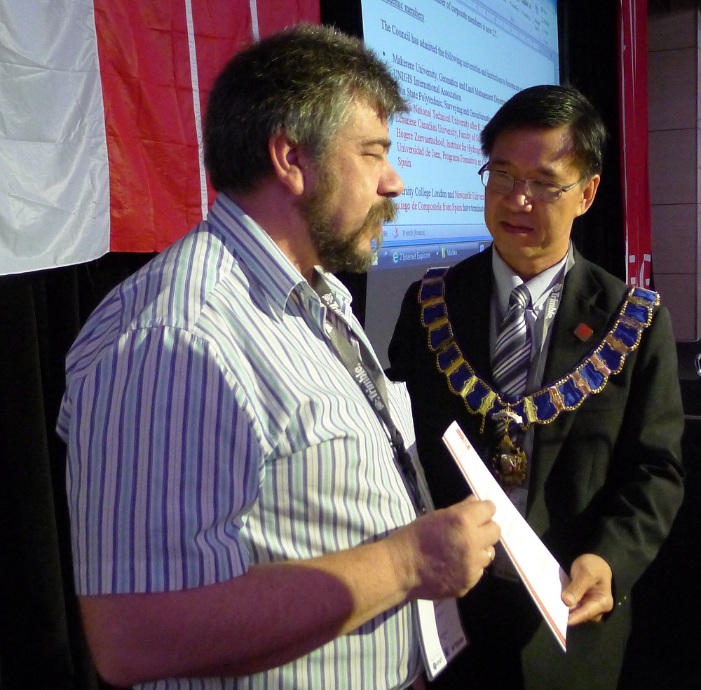 Matt Higgins was appointed as an Honorary Member of FIG - the badge and certificate were received on his behalf by Rob Sarib.