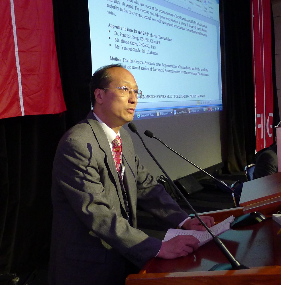 Dr. Pengfei Cheng, CSGPC, China PR making his speech as candidate for Vice President.