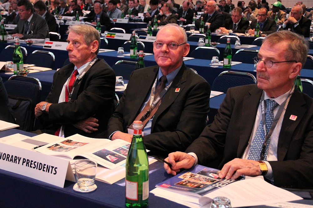 Honorary Presidents Robert W. Foster, Stig Enemark and Juha Talvitie following the appointment of new honorary member.