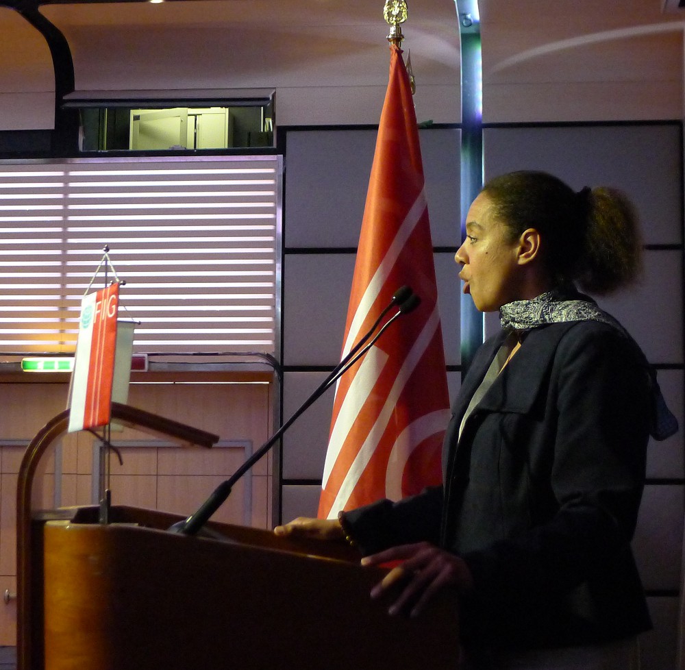 Diane Dumashie, Chair of FIG Africa Task Force making her report to the General Assembly.