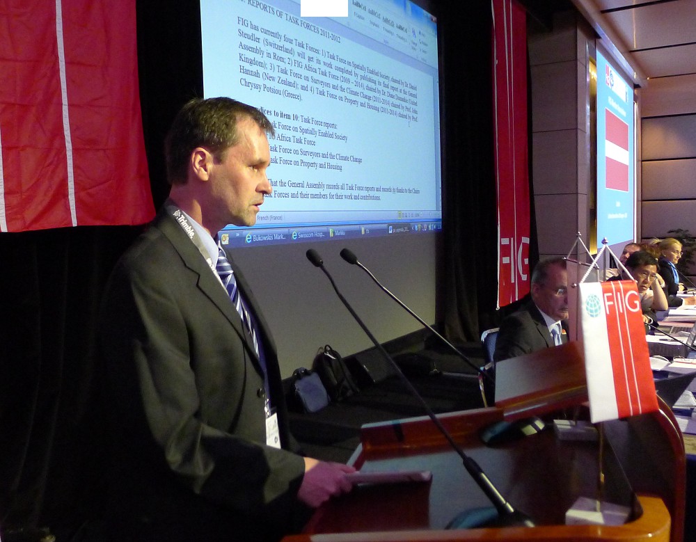 Vice President Iain Greenway reporting on the good financial situation of FIG in 2011.