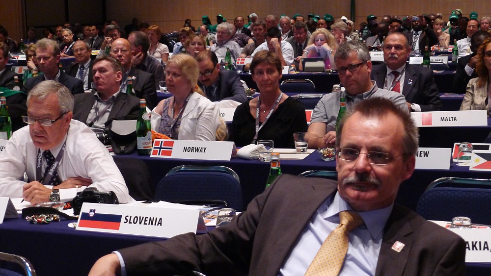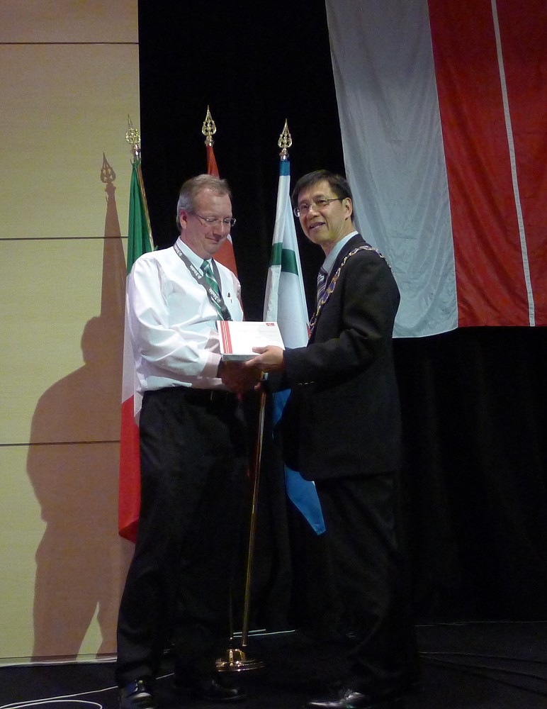 At the flag ceremony the FIG banner was given from CNGeGL, Italy to NIS,