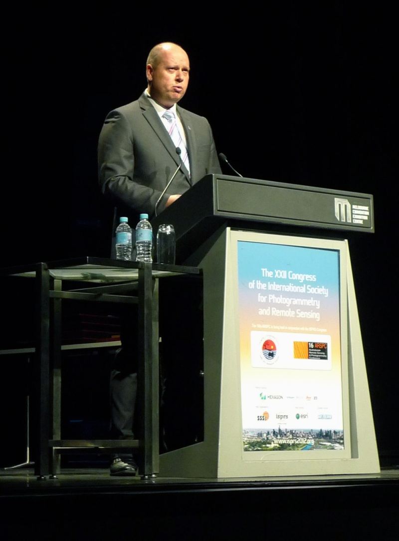 President of the Surveying and Spatial Sciences Institute, Australia, Mr. Gary Macguire, addressing the audience at the Congress Opening Ceremony, 25th August 2012
