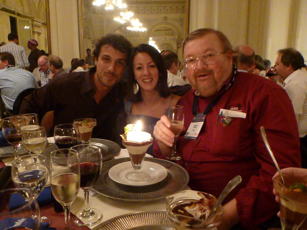 Chair of Commission 2 and member of the FIG Foundation Board, Steve Frank celebrated his birthday with a biirthday candle together with two of the  participants funded by FIG Foundation
