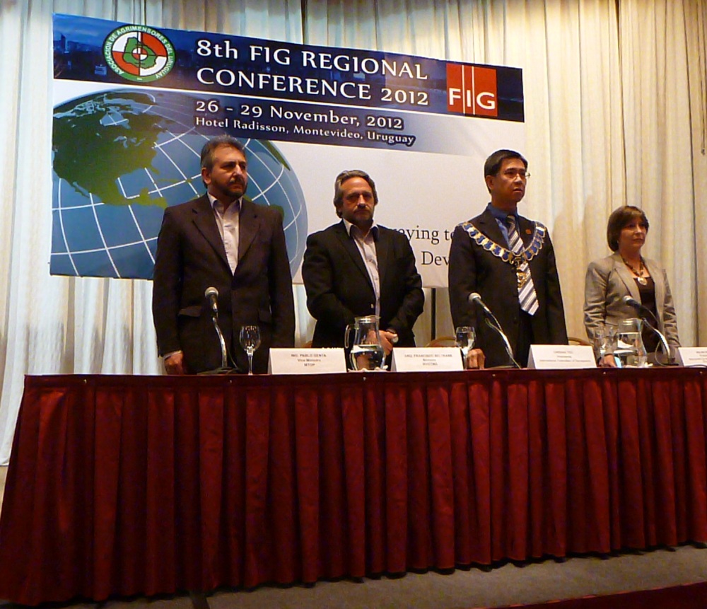 The 8th FIG Regional Conference titled "Surveying towards Sustainable Development" was held in Montevideo, Uruguay 26-29 November 2012. It was a pleasure for FIG that the Regional Conference took place in South America, and it was the first bigger FIG event in this region. In 2007 the Regional Conference was held in Costa Rica and not many FIG activities have until now taken place in Latin America. The successful Regional Conference in Uruguay proved that Latin America is a very interesting area both for the Surveying society and for hosting a conference.